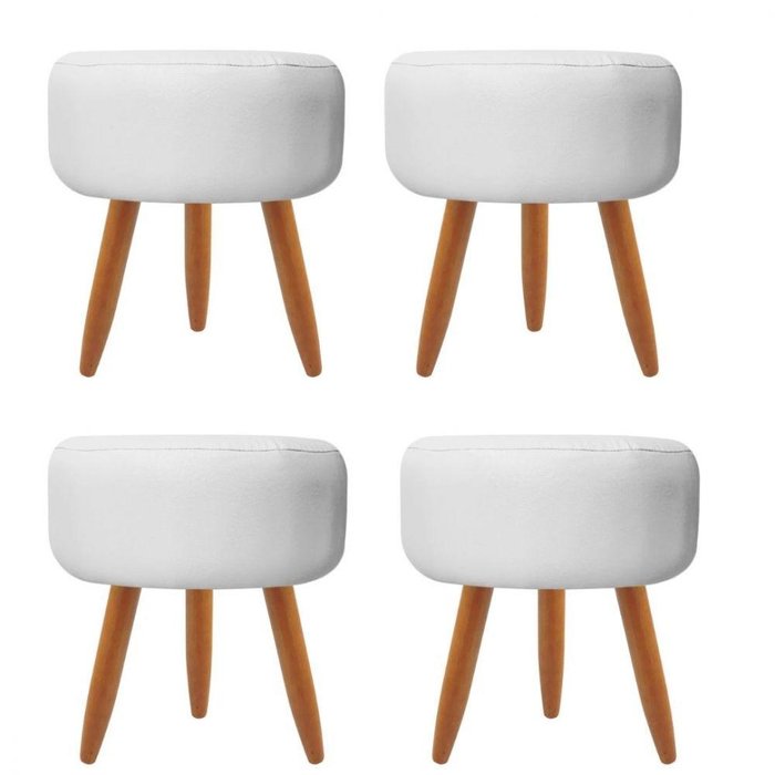 Combo 4 Puffs Decorativos Redondo Pé Palito-corino Branco