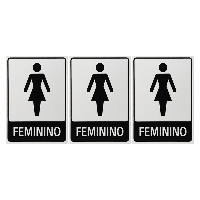Neste Kit contém 6 unidades de placas com a escrita "Banheiro Feminino".