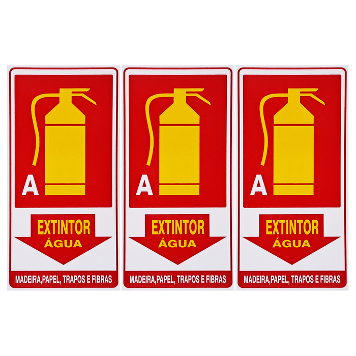 Neste Kit contém 6 unidades de placas com a escrita "Extintor A Água, Madeira, Papel, Trapos E Fibras".