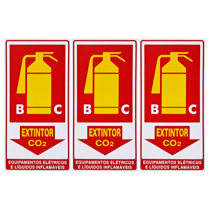 Neste Kit contém 6 unidades de placas com a escrita "Extintor BC CO2, Equipamentos Elétricos E Líquidos Inflamáveis".
