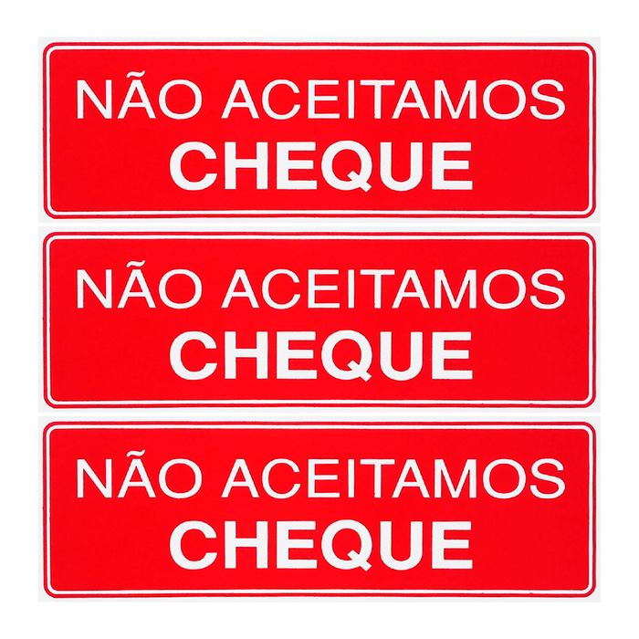 Neste Kit contém 6 unidades de placas com a escrita "Não Aceitamos Cheque".