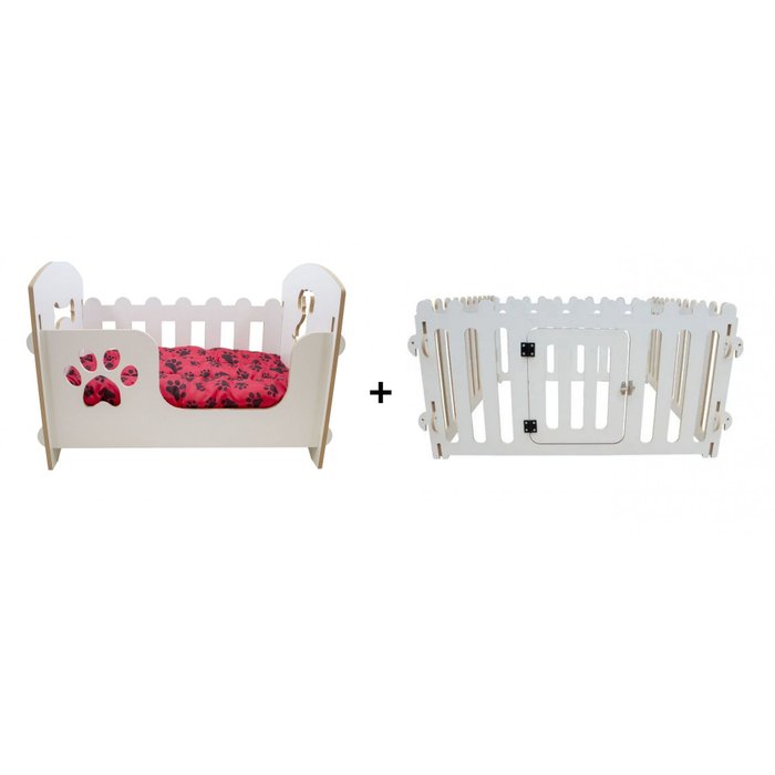 Combo Cama Berço Cachorro Luxo P + Cercado Para Cães Luxo P