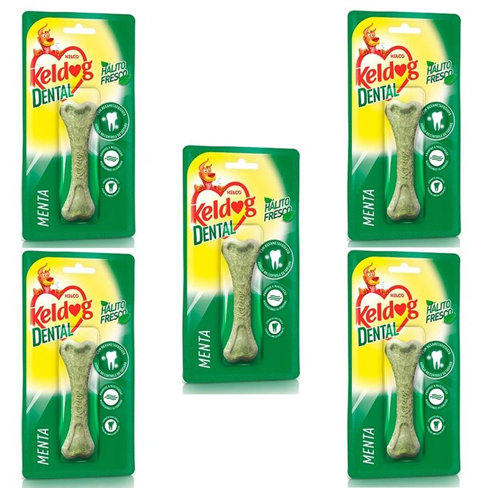 Combo com 5 Ossinho para cachorro Keldog Dental Menta - Osso cães controle de tártaro, hálito e