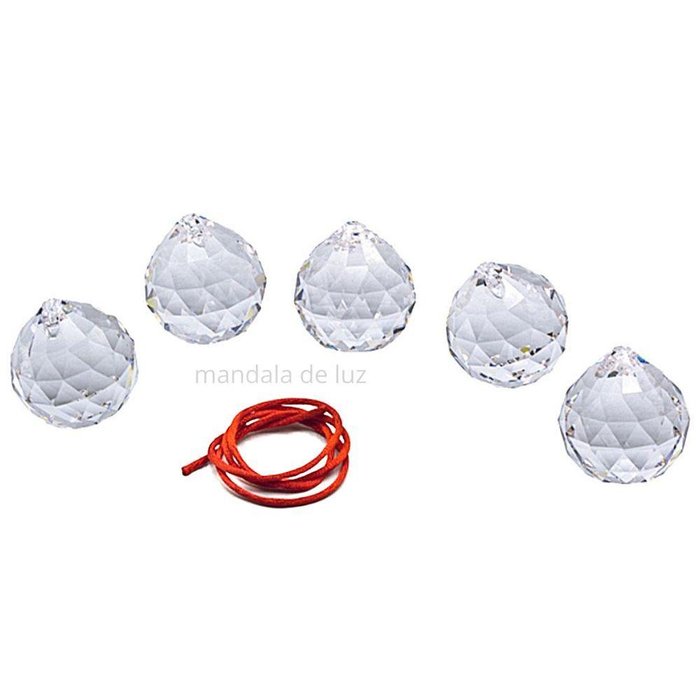 Combo Com 5 Prismas Esferas Multifacetadas Cristal Asfour 40mm + Fio Vermelho