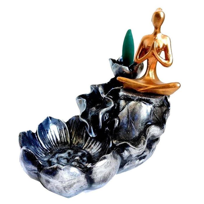 Combo Incensário Cascata Yoga Flor + Incenso Cone Lavanda