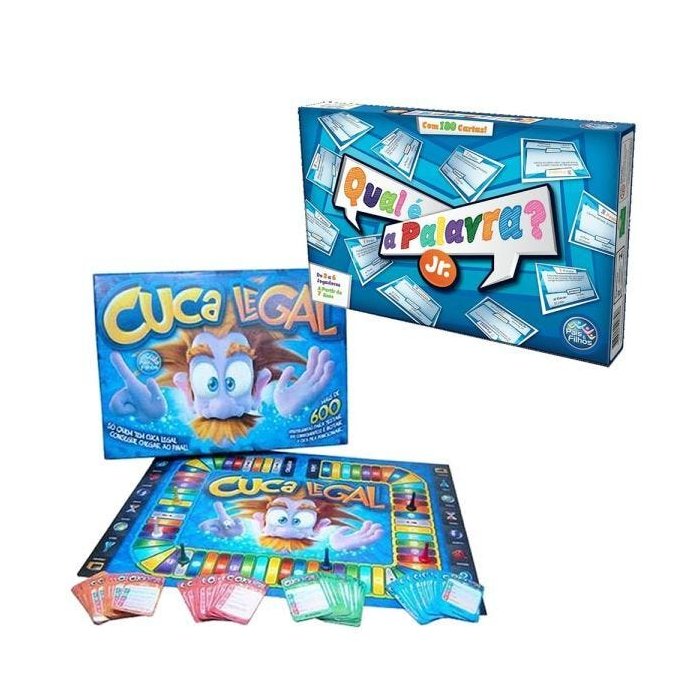 A criançada vai adorar todos esses jogos para se divertir. Detalhes do Jogo Cuca Legal:Neste Jogo Você Terá Que Mostrar Seus Conhecimentos Sobre Vários Assuntos! Para Vencer Você Deverá Ser Melhor Em Tudo, Respondendo Questões Sobre Atualidade, Geografia, Português, Esportes Entre Outros Temas. Acertando As Respostas, Você Poderá Avançar As Casas No Tabuleiro Até Chegar Á Casa Chegada. Se Errar A Resposta, Deverá Voltar O Número De Casas Tiradas No Dado E Assim Ficará Mais Distante Da Vitória.Mais De 600 Perguntas Para Testar Seus Conhecimentos E Botar A Cuca Para Funcionar! Só Quem Tem Cuca Legal Consegue Chegar Até O Final.Estimula A Criatividade, Convívio Social, Agilidade, E Também O Raciocínio.Idade: A Partir De 6 Anos. Detalhes do Jogo Qual é a Palavra Jr.QUAL É A PALAVRA JR., CONTÉM 180 CARTAS, PODENDO SER JOGADO DE 2 À 6 JOGADORES. ESTIMULA, DE FORMA DIVERTIDA, A INTERAÇÃO. Fabricante: Pais & Filhos Faixa etária recomendada: A partir de 3 anos Dimensões do produto: 37x24x5 cm Dimensões do produto com embalagem: 39x26x7 cm Conteúdo da caixa:1 Tabuleiro;6 peões plásticos;180 cartas de perguntas e 24 fichas de letras Peso aproximado do produto: 350g Embalagem: Papelão