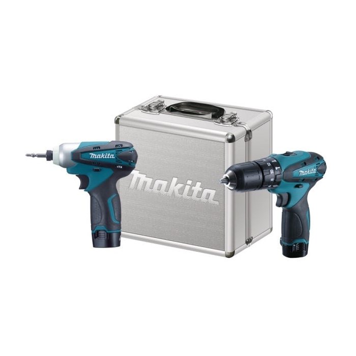 Combo Makita DK1493 = Furadeira HP330D + Parafusadeira TD090D + maleta + carregador bivolt Características: Combo de Ferramentas composto por: Parafusadeira/Furadeira de Impacto. Parafusadeira de Impacto. Carregador bivolt. Maleta metálica. Especificações: HP330D - Parafusadeira / Furadeira de Impacto Bateria: 12V Capacidades: Madeira: 21mm Aço: 10mm Concreto: 8mm Rotações por minuto: Alta: 0 - 1.500 Baixa: 0 - 400 Impactos por minuto: Alta: 0 - 22.500 Baixa: 0 - 6.000 Torque: Junta Rígida: 24 N.m Junta Flexível: 12 N.m Dimensões (C x L x A): 201 x 53 x 183mm Peso: 1.1kg Emissão de vibrações: 9.5 m/s² Incerteza K: 1.5m/s² TD090D - Parafusadeira de Impacto Capacidades: Parafuso para máquina: M4 - M8 Parafuso padrão: M5 - M12 Parafuso de alta tensão: M5 - M10 Espessura da rosca: 22 - 90mm Impactos por minuto: 0 - 3.000 Rotações por minuto: 0 - 2.400 Torque máximo: 90 N.m Dimensões (C x L x A): 155 x 54 x 178mm Peso: 0.92kg Bateria: 12V Itens que acompanham: 2 Baterias, carregador bivolt e maleta metálica.
