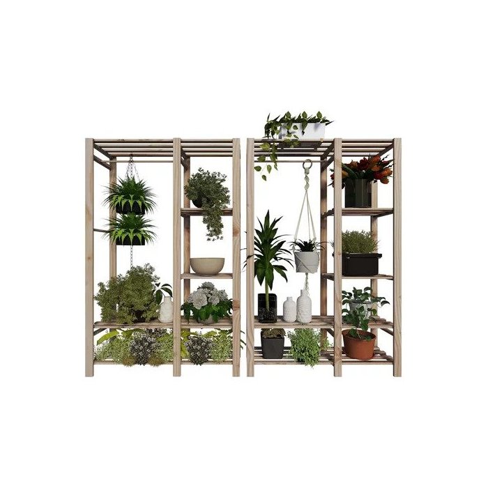 2 Estantes Arara com prateleiras e estrutura em madeira maciça de Pinus.