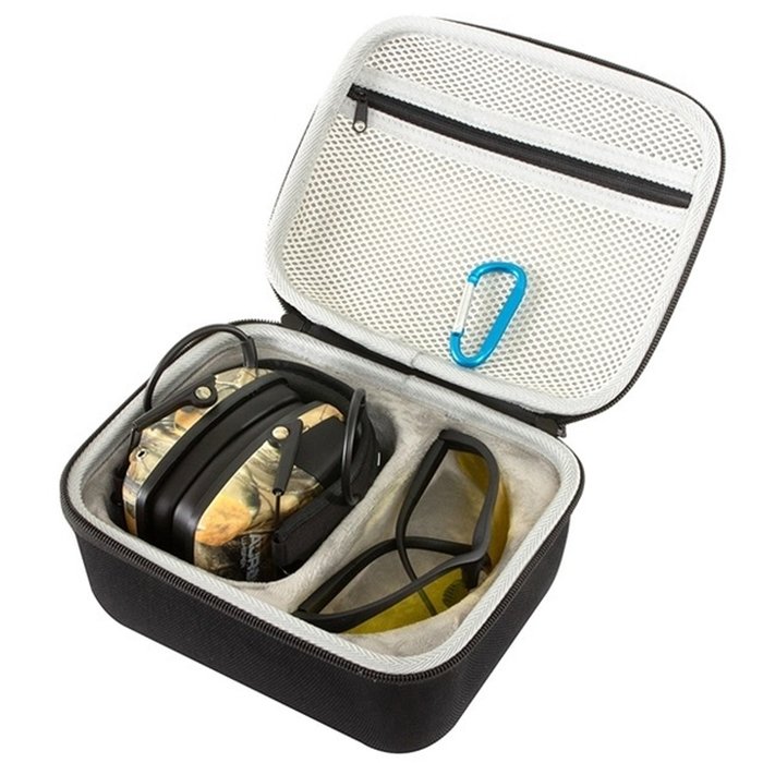 Combo proteção tiro esportivo: Abafador eletrônico + Óculos de proteção + Case estojo para