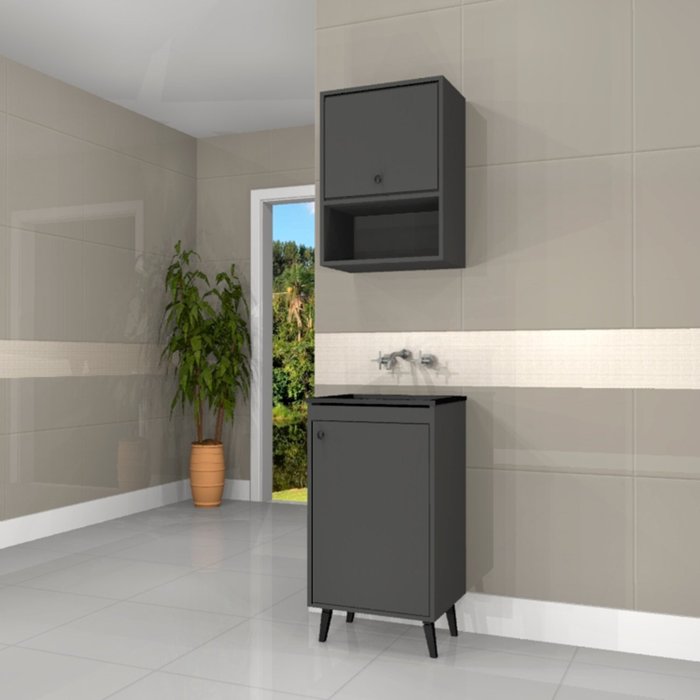 Combo Tanque de lavanderia 22L + Armário 46cm Premium Retrô Chumbo
