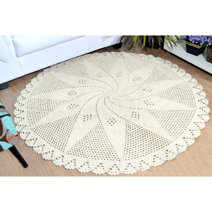 Conforto e elegância farão parte do seu ambiente com este tapete, que tem como objetivo levar um toque sofisticado na sua decoração. É um produto muito versátil, pois além de deixar o ambiente mais bonito e aconchegante, é ideal para deixar as brincadeiras de seus filhos mais agradáveis, divertidas e seguras, já que as crianças não ficarão mais em contato com o chão gelado. Formado por:- 1 tapete redondo diâmetro ( 1,50m de diâmetro) na cor cru- 2 tapetes crochê 0,70 x 0,40m oval na cor Amarelo