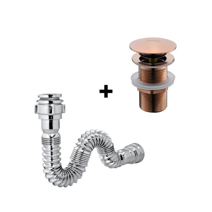 Combo Válvula Click Rosé Gold Metal + Sifão Sanfonado Universal
