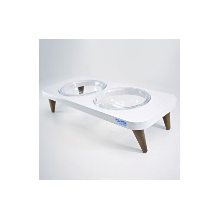 Comedouro Alto Duplo Tomtom Vidro Pet Cachorro Gato Branco