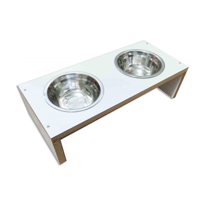 Comedouro Animal Pet Mdf branco laminado tigela de inox