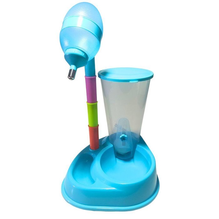 Comedouro Bebedouro Automático Cães e Gatos na cor azul da marca Savana Pet. O comedouro tem a capacidade para 2,5 litros e o bebedouro para 600 ml.