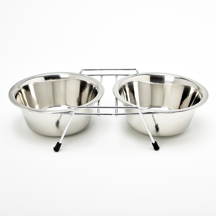 Comedouro Bebedouro Duplo Inox N°3 0,95 L Chalesco O Comedouro Duplo Chalesco é a opção ideal para deixar a hora da refeição ainda mais prática. Com um suporte em arame, os potes ficarão longe do chão, proporcionando higiene e conforto ao seu bichinho. As tigelas são removíveis, o que facilita a higienização. É uma ótima opção para o seu cão. Vasilhas de inox são bonitas, duram por mais tempo, são resistentes a mordidas e muito fáceis para lavar e desinfetar. Como não possuem poros, as bactérias não se alojam nas paredes, evitando assim problemas com contaminações. Água quente e detergente são suficientes para uma perfeita higienização. *As cores do produto podem variar de acordo com o monitor, a iluminação do ambiente e a sua percepção visual.* Características do Produto: - Design moderno; - Fácil Higienização; - Indicado para cães de pequeno porte; - Contém a base elevada para evitar formigas; - Indicação: Cachorros, Gatos; - Material: Aço Inox; - Tamanho 3 - Diâmetro: 17cm x Altura: 6,5 - Capacidade de 470 mL; - Marca: Chalesco. Mantenha o comedouro do seu pet sempre limpo e mantenha seu amiguinho livre das bactérias. Além disso, não coloque mais ração do que ele vai comer. *Verifique nossas políticas internas para que não haja nenhuma dúvida no processo de entrega ao finalizar a compra.*
