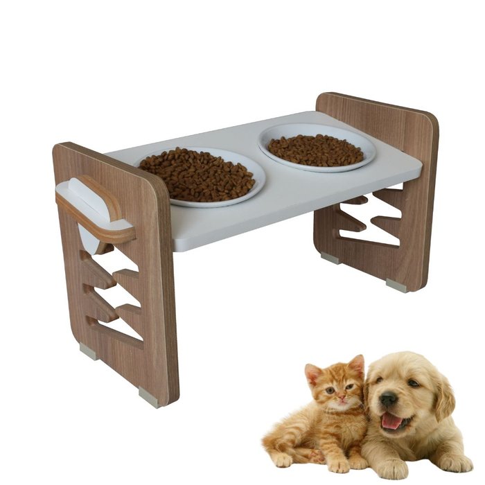 Comedouro Cães e Gatos Duplo Pet Mdf Zig Zag Ajustável - Pn Carvalho Hanover