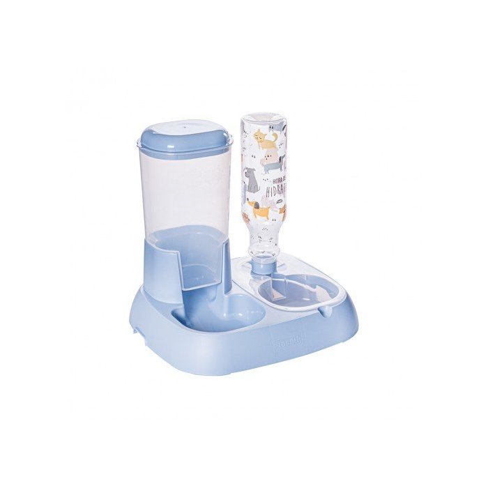 Comedouro e Bebedouro Automático com Garrafa 1L para Pets Cães e Gatos - Wp Connect Azul Azul