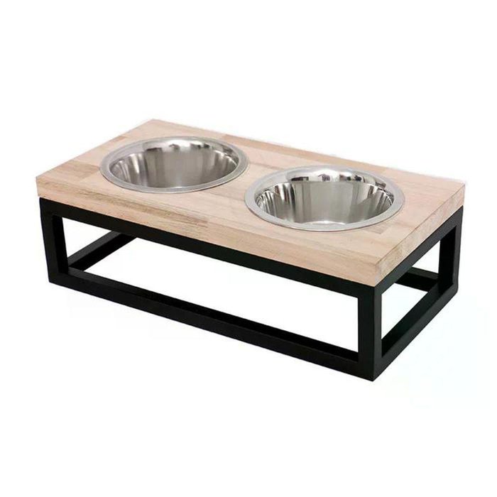 Comedouro e bebedouro elevado para cachorro, a principal característica da peça é a combinação da rusticidade da madeira com a modernidade dos detalhes metálicos. Estrutura reforçada em metal, com acabamento BP/Acetinado (Fosco), material altamente resistente à umidade, riscos e mofo. Contém pés metálicos contando com pintura em epóxi pó na cor preta, base das tigelas em madeira pinus, duas tigelas de inox, tubo de 15x15mm. Os comedouros elevados são recomendados pelos veterinários para ajudar a prevenir problemas digestivos, dores na coluna e artrites. Tudo o que seu Pet precisa para se sentir confortável e amado no seu lar. Esse móvel chegará em sua casa separado em 01 volume.
