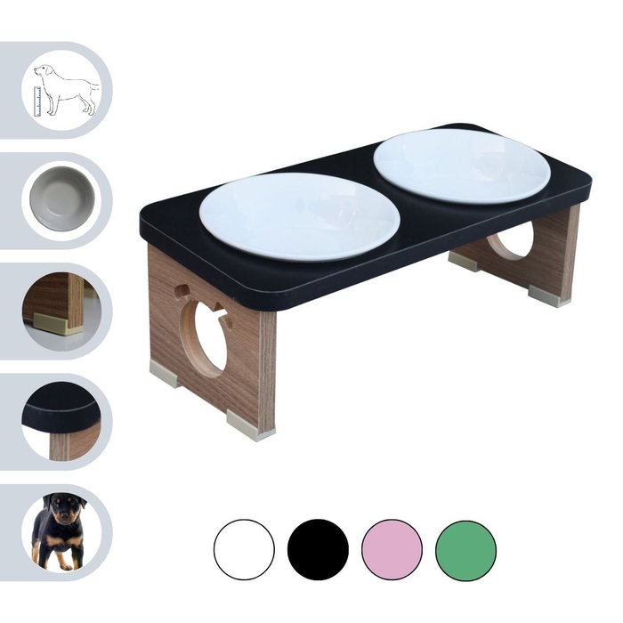Comedouro Elevado Duplo Cachorro Pet Mdf Colors Preto