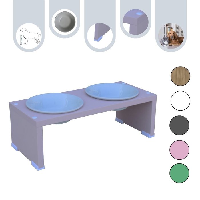 Comedouro Elevado Duplo Pet Gato Cachorro Mdf Nick - Porcelana - Rose