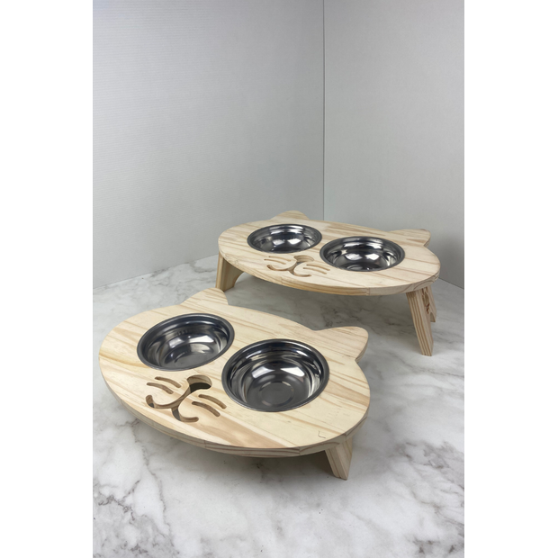 1x 1 Comedouro Elevado de Madeira / 2 Potes de Inox - O Suporte Comedouro já vem montado.