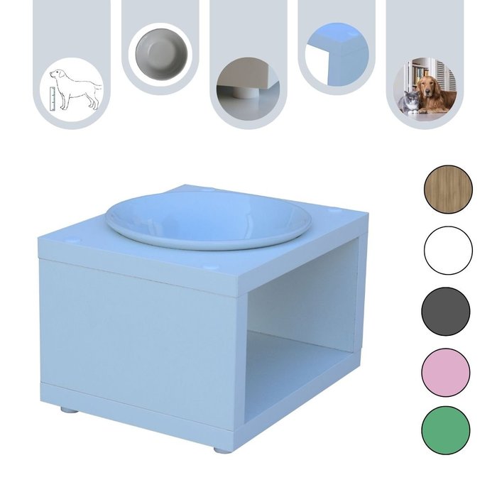 Comedouro Elevado Gato Cachorro Pet Mdf Luke - Porcelana - Branco