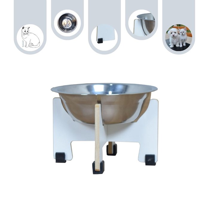 Comedouro Elevado Gato Cachorro Pet Mdf Modelo Torre:11cm/inox