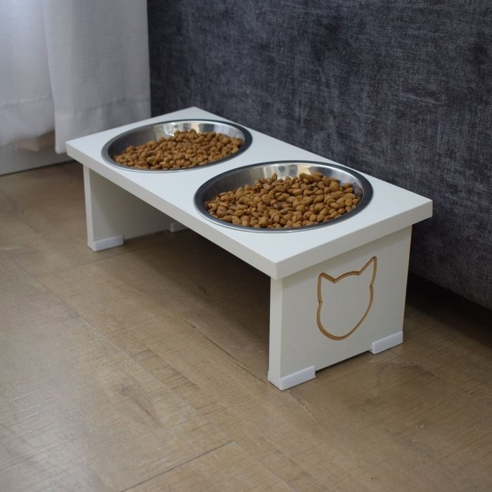 Comedouro Elevado Pet Gato Mdf Duo - Inox