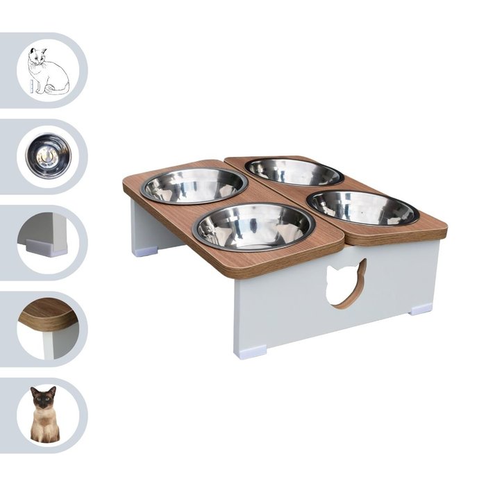 Comedouro Elevado Quadruplo Gato Pet Mdf - Inox