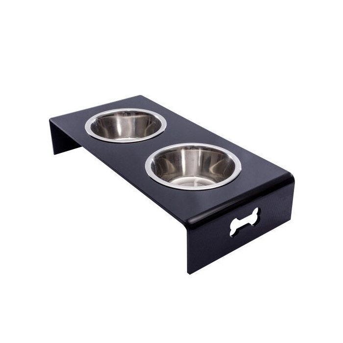 Comedouro em acrílico preto 6mm fino acabamento em recorte laser dando muito mais charme aos detalhes do produto.