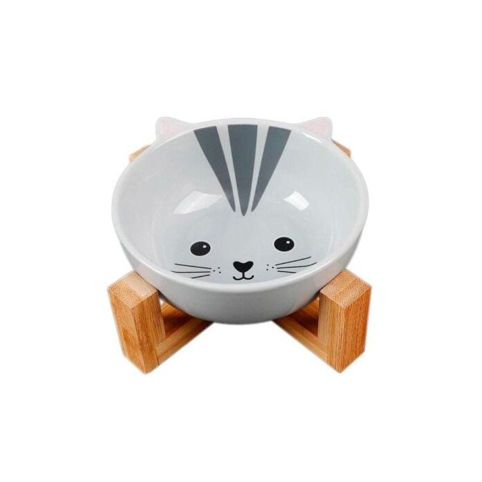 Comedouro Pet Em Ceramica E Bambu 300Ml Gato