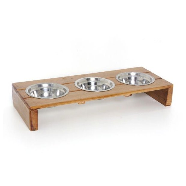 Comedouro para pets, produzidos artesanalmente com madeira de reflorestamento.Tigelas removíveis de 400 ml.Muito práticos, bonitos e higiênicos.Pintura resistente à água, perfeita para a proteção da madeira e durabilidade do produto.Medidas: 21 cm de largura x 65 cm de comprimento x 7 cm de altura.