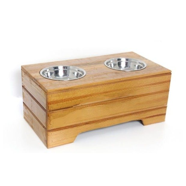 Comedouro para pets produzidos artesanalmente com madeira de reflorestamento.Tigelas removíveis em INOX de 900 ml.Muito prático, bonito e higiênico.Pintura resistente à água, perfeita para proteção da madeira e durabilidade do produto.Medidas: 28 cm de largura x 52 cm de comprimento x 21 cm de altura.