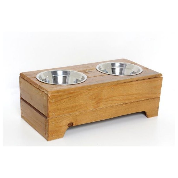 Comedouro para pets, produzidos artesanalmente com madeira de reflorestamento.Tigelas removíveis em INOX de 600 ml.Muito prático, bonito e higiênico.Pintura resistente à água, perfeita para proteção da madeira e durabilidade do produto.Medidas: 21 cm de largura x 42 cm de comprimento x 15 cm de altura.
