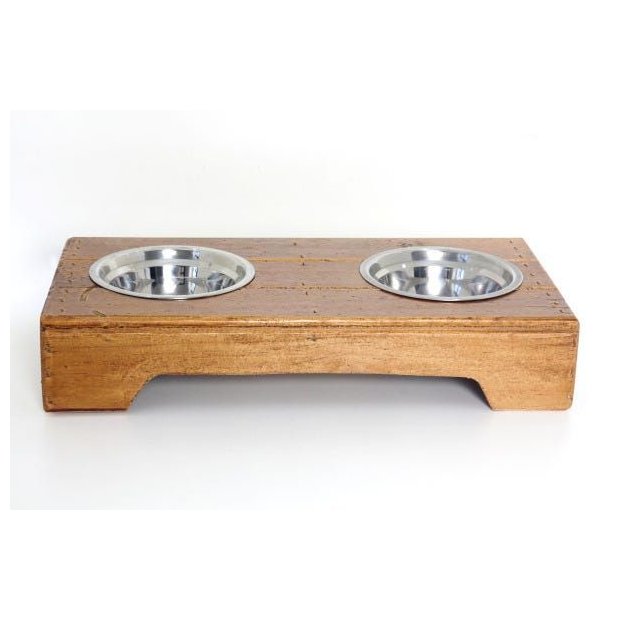 Comedouro Pet produzido artesanalmente com madeira de reflorestamento, tigelas removíveis em Inox de 400 ml, pintura resistente à água, perfeita para a proteção da madeira e durabilidade do produto.21 cm de largura, 42 cm de comprimento, 7 cm de altura.