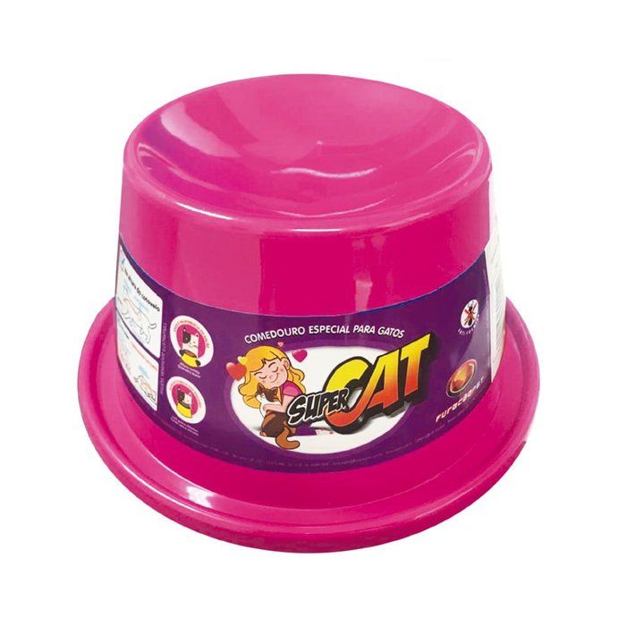 Comedouro Plástico Gato Super Cat - 200 Ml - Rosa - Furacão Pet