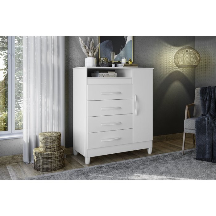 Cômoda 1 Porta 4 Gavetas Turquesa Albatroz Móveis Branco