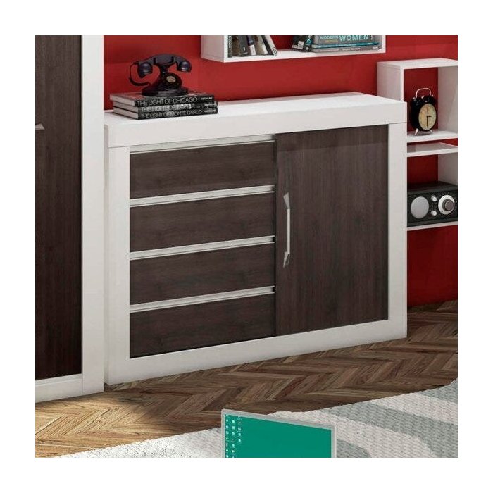 Cômoda 1 Porta de Correr 4 Gavetas Branco/Carvalho