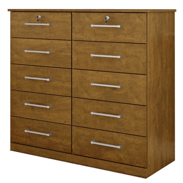 Cômoda 10 Gavetas JL06 com Chave JL Móveis Cor Carvalho