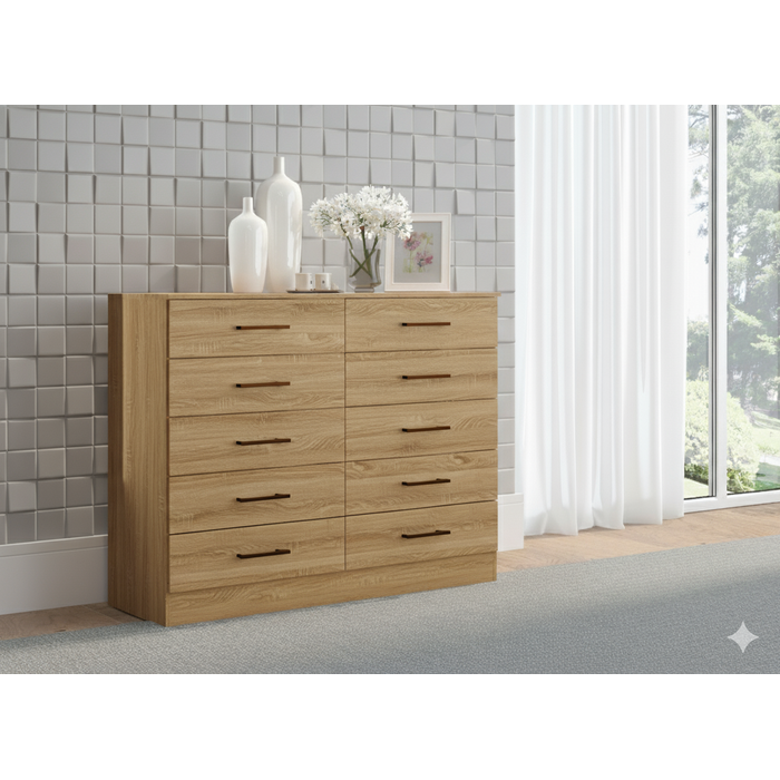 Cômoda 10 Gavetas Mdp 117x92x40,5cm 3017:carvalho