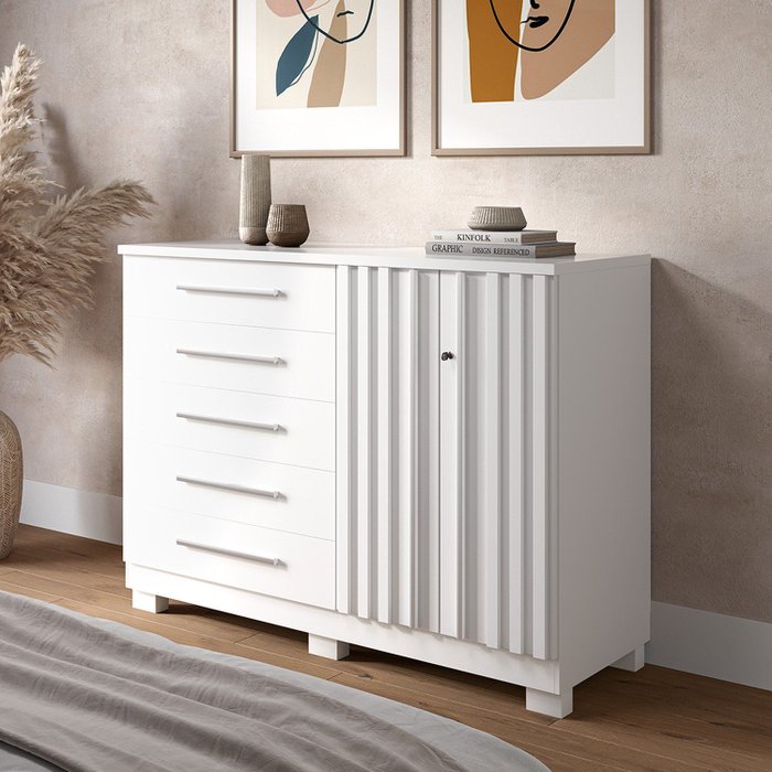 Cômoda 136cm 2 Portas e 5 Gavetas com Sapateira 100% Mdf Gérbera Branco