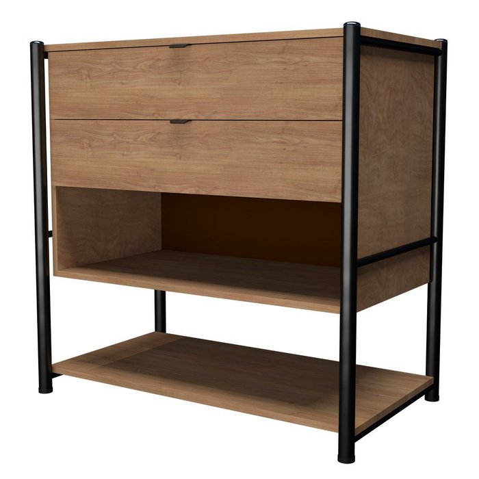 Cômoda 2 Gavetas Nicho Aberto Prateleira Inferior Estrutura Aço Mdp Alice Preto / Demolição