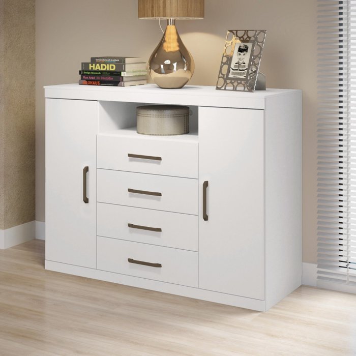 Cômoda 2 Portas 4 Gavetas 1 Nicho Master com Pés Branco
