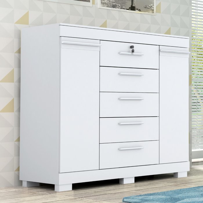 Cômoda 2 Portas 5 Gavetas 100% MDF Diana ACP Móveis Branco
