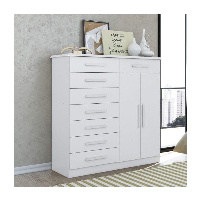 Cômoda 2 Portas 8 Gavetas Verona Plus Albatroz Móveis Branco