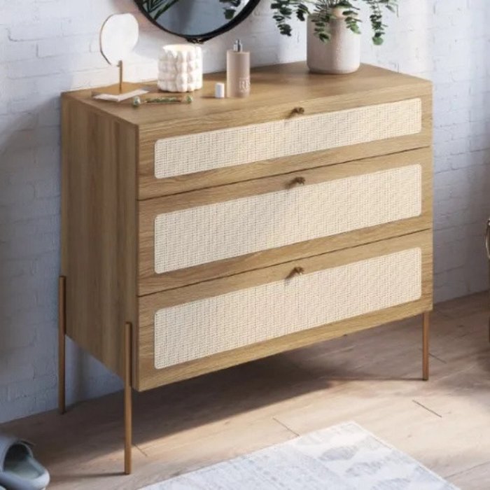 Cômoda 3 Gavetas Palhinha Pé Madeira Oslo Artesano Hanover