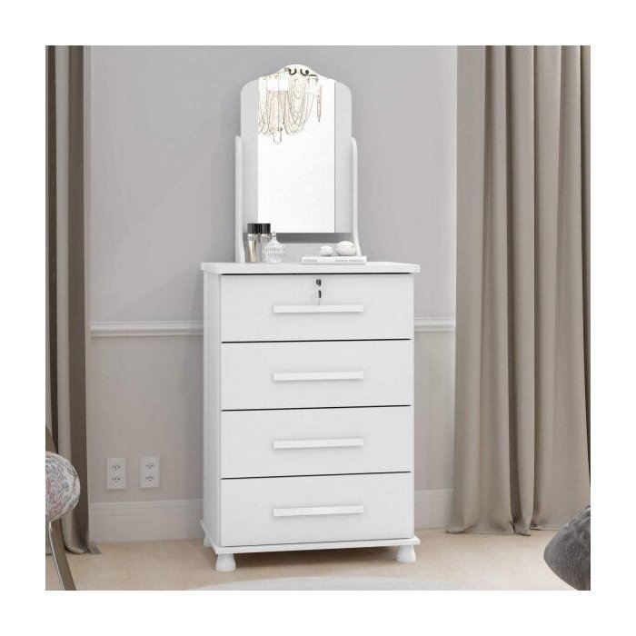 Cômoda 4 Gavetas 1 Espelho Dalila Patrimar Móveis Branco