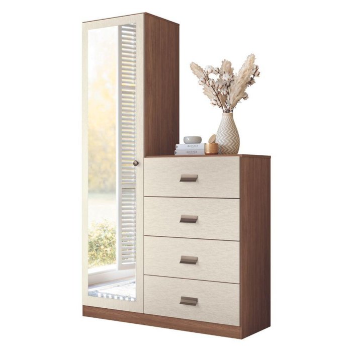 Cômoda 4 Gavetas 1 Porta Com Espelho Doha Jatobá Areia