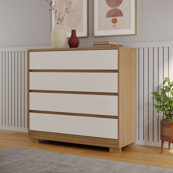 Cômoda 4 Gavetas 100% MDF Moana Camaru/Pérola